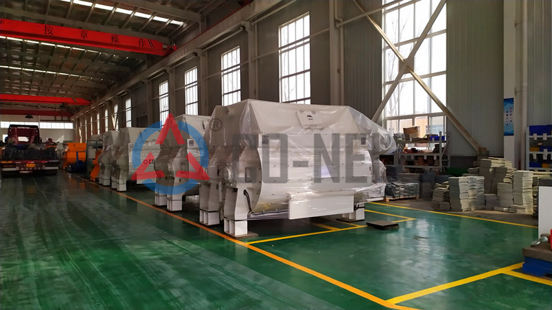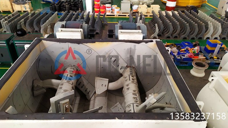 固廢處理設備采用雙臥軸強製式攪拌機中的雙螺帶攪拌機對固廢進行攪拌